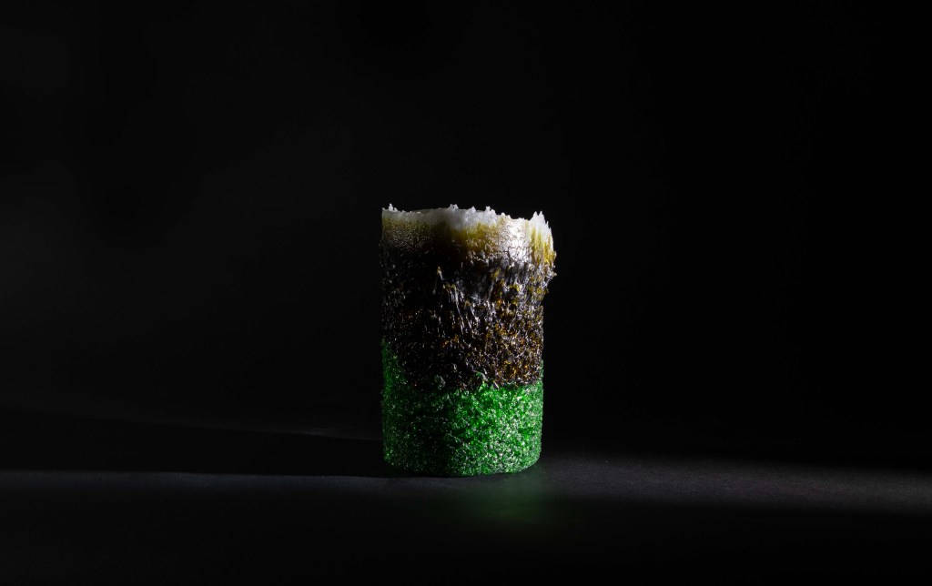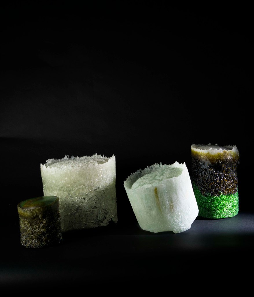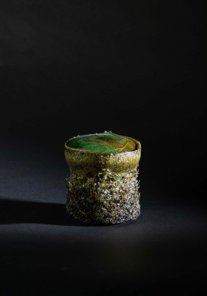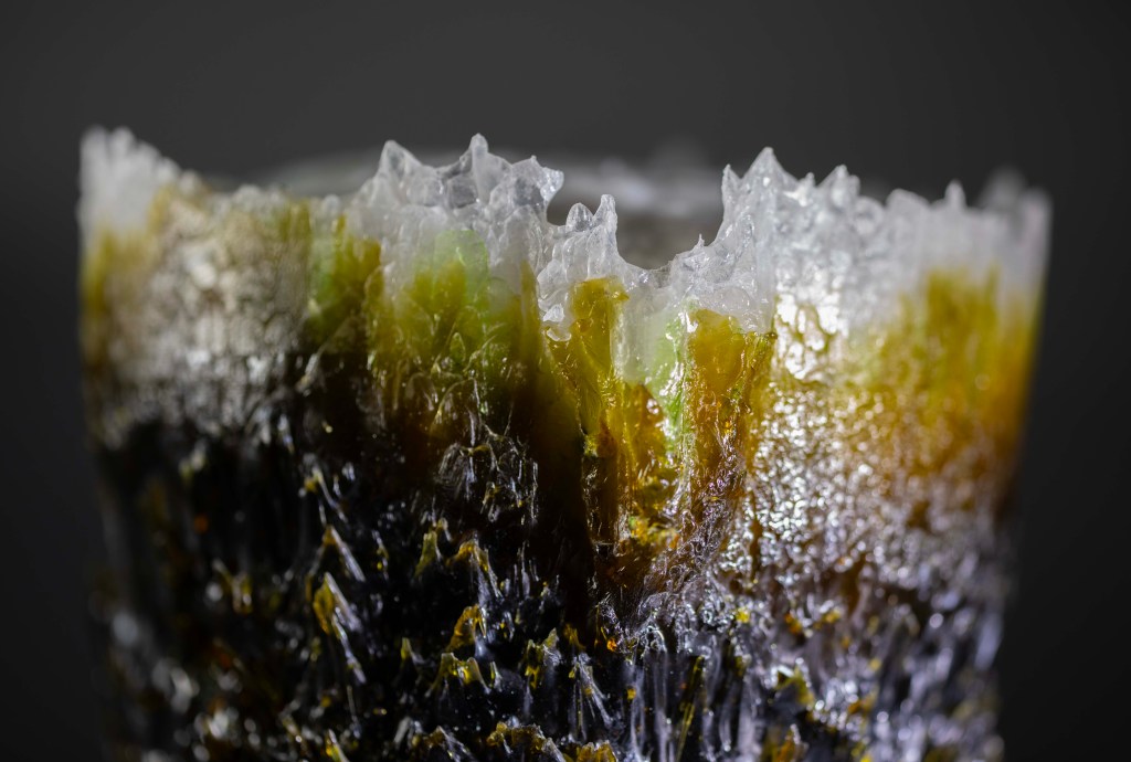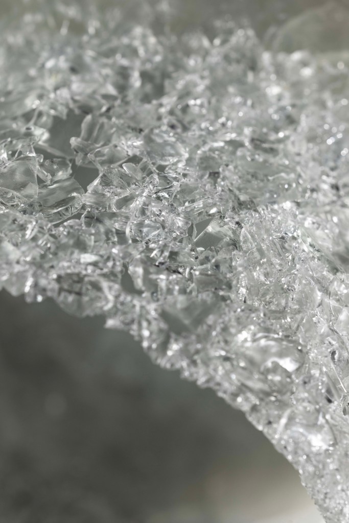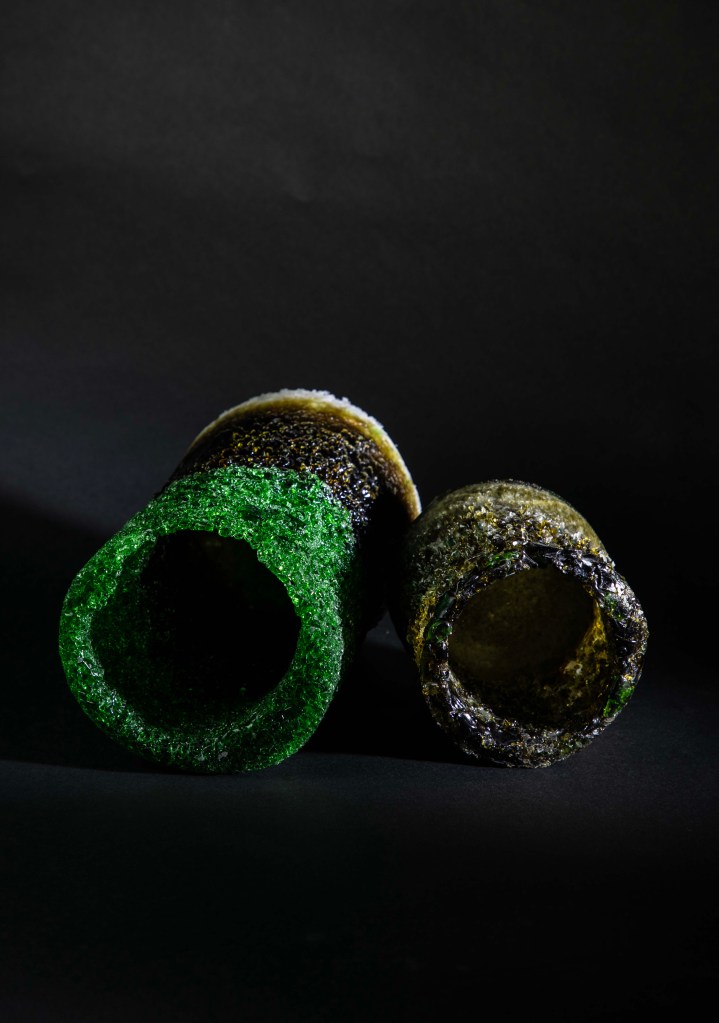 Recycled-glass sculptures are inspired by deep-sea brine pools—dense, hypersaline lakes that collect in seafloor depressions when seawater interacts with ancient salt deposits beneath the seabed. These pools are toxic and oxygen-poor, creating stark boundaries where life thrives at the edges but disappears within. As our planet warms, it is urgent to slow that trajectory. My approach is to reclaim waste glass and transform it into sculpture, giving discarded material new life while reflecting on fragile ecological thresholds.